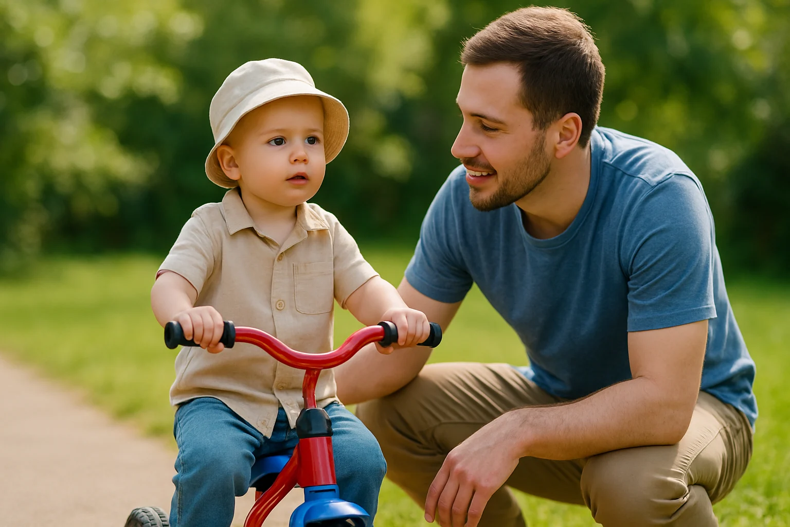 Teaching a child to ride a trike isn’t one big moment. It’s a bunch of small steps that add up. Take your time and let each part sink in before you move on.